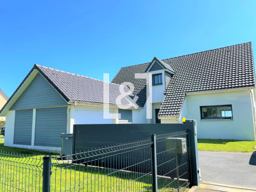 La maison propose une entrée, une confortable pièce de vie de 60 m² avec un accès direct a une grande terrasse exposée sud-ouest, une cuisine aménagée et équipée, une arrière-cuisine, 3 chambres dont une avec accès terrasse, un dressing, une salle de bains, une salle de douche et un WC. Double garage attenant avec grande mezzanine de rangement. Parkings supplémentaires sur la parcelle. Cave. Chauffage électrique. Assainissement au tout à l'égout.